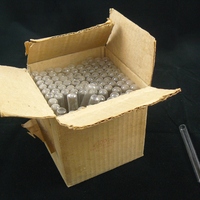 Descripció: Capsa de cartró de 100 tubs de vidre de d'assaig de 10x100 mm (incompleta)