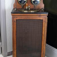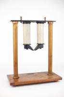 Instruments científics Patrimoni moble - Eines i equips - Electricitat i magnetisme FFUB-0235 Condensador d’Aepinus Artefacte experimental (electroestàtica)|Condensador (component de sistema elèctric) Electromagnetisme Descripció general: Serveixen per acumular electricitat gràcies a un sistema mòbil de plats metàl·lics separats per un aïllant (per exemple aire sec). En el cas del condensador d’Aepinus s’utilitza una làmina de vidre entre els plats com aïllant. Funcionament: Es situa un dels plats connectat amb el terra i, l’altre, a una font d’electricitat. Així es pot obtenir la càrrega màxima al anar apropant els plats separats pel vidre. Dades històriques: Instrument del segle XVIII inventat pel científic rus (d’origen alemany) Theodosius Aepinus (1724-1802). Conegut especialment per la seva feina en el camp de l’electromagnetisme. Desconegut 1860-1870 1860 1870 46 x 22,5 x 44 cm Llautó|Vidre (material)|Fusta Desconegut Facultat de Física. Martí i Franquès, 1-11, 08028 Barcelona Vestíbul Planta 1 Desconeguda Bo Exposició "Electromagnetisme" - Facultat de Física - Universitat de Barcelona (Barcelona, Barcelonés, Barcelona, Espanya) - a partir del 22 setembre de 2022 Ganot A. "Tratado elemental de física experimental y aplicada y de meteorología", 6 ed., 1873, pág. 639-641|http://bdh-rd.bne.es/viewer.vm?id=0000237980&page=641|http://bdh-rd.bne.es/viewer.vm?id=0000131786&page=397 Protegit per dret d'autor Santiago Vallmitjana Rico, Departament de Física Aplicada, UB|Joan Manel Hernández, Departament de Física de la Matèria Condensada, UB