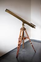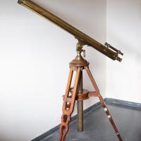 Instruments científics Patrimoni moble - Eines i equips - Astronomia FFUB-0151 Telescopi refractor Telescopi Astronomia És un telescopi refractor que, per la seva estructura òptica, és més adequat per a aficionats que per a astrònoms professionals o per a la recerca. Té regulació d’alçada i d’azimut, i està dotat d’un buscador. Al Paranimf de l’Edifici Històric de la Universitat de Barcelona, a la paret frontal de la dreta, hi ha un quadre del 1883 del pintor Joan Vicens i Cots (1836-1885) titulat Al·legoria de les ciències exactes, físiques i naturals, en què figura aquest telescopi. Vda. de J. Rosell 1860-1890 1860 1890 90 x 90 x 200 cm Llautó|Vidre (material)|Fusta Barcelona, Espanya Facultat de Física. Martí i Franquès, 1-11, 08028 Barcelona Despatx 501 Desconeguda Bo Reserva (magatzem) En el paraninfo del edificio histórico de la Universidad de Barcelona, en la pared frontal, a la derecha hay un cuadro del pintor Joan Vicens Cots (1836-1885), que en torno a 1882 hizo esta obra titulada "Alegoria a las Ciencias exactas, físicas y naturales", en donde figura este telescopio. Protegit per dret d'autor No Santiago Vallmitjana Rico, Departament de Física Aplicada, UB|Joan Manel Hernández, Departament de Física de la Matèria Condensada, UB