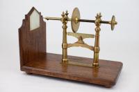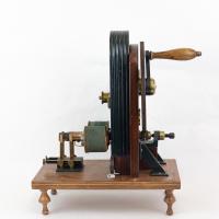 Instruments científics Patrimoni moble - Eines i equips - Electricitat i magnetisme FFUB-0227 Màquina de Clarke Artefacte experimental (electromagnetisme)|Generador Electromagnetisme Desconegut 35,5 x 20 x 40 cm Ferro (metall)|Llautó|Fusta|Coure (metall) Desconegut Facultat de Física. Martí i Franquès, 1-11, 08028 Barcelona Sala del Deganat Desconeguda Bo Reserva (magatzem) Ganot A. "Tratado elemental de física experimental y aplicada y de meteorología", 6 ed., 1873, pág. 778-783 La base de madera es nueva. Protegit per dret d'autor No Santiago Vallmitjana Rico, Departament de Física Aplicada, UB|Joan Manel Hernández, Departament de Física de la Matèria Condensada, UB