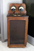Instruments científics Patrimoni moble - Distribució i transport - Contenidors|Patrimoni moble - Eines i equips - Electricitat i magnetisme FFUB-0234 Recipient per a descàrrega de gasos Equip de laboratori Electromagnetisme Desconegut 21 x 10 x 27,5 cm Ferro (metall)|Llautó|Vidre (material) Desconegut Facultat de Física. Martí i Franquès, 1-11, 08028 Barcelona Sala del Deganat Desconeguda Bo Reserva (magatzem) Protegit per dret d'autor No Santiago Vallmitjana Rico, Departament de Física Aplicada, UB|Joan Manel Hernández, Departament de Física de la Matèria Condensada, UB