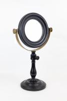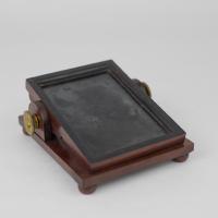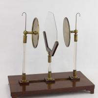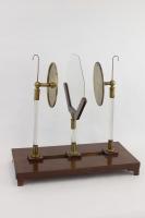 Instruments científics Patrimoni moble - Eines i equips - Òptica FFUB-0244 Mirall Instrument òptic|Mirall Òptica Desconegut 10,5 x 12,5 x 5,5 cm Llautó|Vidre (material)|Fusta Desconegut Facultat de Física. Martí i Franquès, 1-11, 08028 Barcelona Sala de Juntes Desconeguda Regular (possible tractament) Reserva (magatzem) Protegit per dret d'autor No Santiago Vallmitjana Rico, Departament de Física Aplicada, UB|Joan Manel Hernández, Departament de Física de la Matèria Condensada, UB
