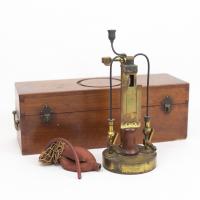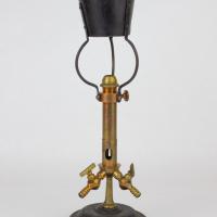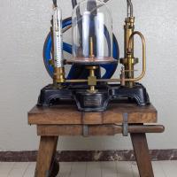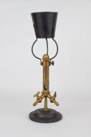 Instruments científics Patrimoni moble - Eines i equips FFUB-0197 Cremador o encenedor de dos gasos (O/H) Cremador de gas Termodinàmica En els laboratoris de química s’usen freqüentment els anomenats encenedors Bunsen, el nom dels quals prové del nom del químic alemany Robert Wilhelm Bunsen. En aquest tipus d’aparells, el gas utilitzat pot ser metà, propà o butà. Si el proveïment de gas és constant, la temperatura de la flama depèn de la quantitat d’aire prebarrejat amb el gas comburent abans de la combustió. Es pot obtenir una combustió més completa del metà prebarrejant-lo amb oxigen gasós pur en lloc d’aire. Per obtenir encara temperatures més altes, es pot emprar un bufador oxhídric (oxigen/hidrogen), que premescla els gasos hidrogen i oxigen abans de la combustió. La reacció entre l’acetilè i l’oxigen és encara més exotèrmica. J Duboscq Vora 1880 1870 1890 13,5 x 13,5 x 35 cm Ferro (metall)|Llautó París, França Facultat de Física. Martí i Franquès, 1-11, 08028 Barcelona Sala de Juntes Desconeguda Bo Reserva (magatzem) Protegit per dret d'autor No Santiago Vallmitjana Rico, Departament de Física Aplicada, UB|Joan Manel Hernández, Departament de Física de la Matèria Condensada, UB