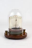 Instruments científics Patrimoni moble - Eines i equips - Mesurament FFUB-0209 Galvanòmetre d’imant mòbil Galvanòmetre|Instrument de mesura (instrument) Electromagnetisme Descripció general: En general, els galvanòmetres mesuren la intensitat de corrent i la seva direcció (mitjançant la llei d'Ampere). Fonamentalment formats per una agulla rodejada d'una espira metàl·lica sobre una base de fusta. Abans de fer qualsevol mesura s'ha de modificar la base fins que l'agulla apunti al zero i, per tant, estigui anivellada. Es poden classificar en galvanòmetres d’imant mòbil o de quadre mòbil segons si la peça mòbil és l’imant o el quadre de filferro. Funcionament: Anomenat també galvanòmetre d'agulla vertical com a referència a l’agulla que fa d’índex i que es situa verticalment sobre una plataforma de ferro imantada. Aquesta plataforma està envoltada pel filferro per on circula el corrent, cosa que provoca que es mogui i l’agulla marqui la desviació corresponent. Curiosament, en aquest tipus concret de galvanòmetre, no és el camp magnètic el que provoca una desviació sinó que l’efecte de la gravetat sobre la plataforma. Dades històriques: També rep el nom de galvanòmetre de tipus Breguet en referència al probable fabricant de l’instrument. Louis Clément François Breguet també era conegut com a fabricant d’eines telegràfiques. En 2021, en les tasques de restauració dels instruments, s'hi afegeix una campana de vidre que mancava (segons les referències, Feliu o Ponce de León). Breguet 1850-1870 1850 1870 12 x 12 x 11 cm Ferro (metall)|Llautó|Fusta|Coure (metall)|Imant Desconegut Facultat de Física. Martí i Franquès, 1-11, 08028 Barcelona Vestíbul Planta 1 Desconeguda Bo Exposició "Electromagnetisme" - Facultat de Física - Universitat de Barcelona (Barcelona, Barcelonés, Barcelona, Espanya) - a partir del 22 setembre de 2022 http://bdh-rd.bne.es/viewer.vm?id=0000237980&page=682 En 2021 s'hi afegeix una campana de vidre que mancava (segons les referècies, Feliu o Ponce de León) Protegit per dret d'autor Santiago Vallmitjana Rico, Departament de Física Aplicada, UB|Joan Manel Hernández, Departament de Física de la Matèria Condensada, UB