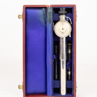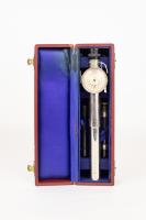 Instruments científics Patrimoni moble - Eines i equips - Òptica FFUB-0183 Refractòmetre d’Abbe Refractòmetre Òptica El funcionament d’aquest instrument es basa en el fenomen de la reflexió total, que es produeix quan la llum passa d’un medi d’índex major a un altre menor, amb una incidència major que el valor de l’angle límit. D’aquesta manera es veu en el camp de l’ocular una zona fosca i una altra lluminosa, clarament separades, i segons el valor de l’índex de la mostra (sòlida o líquida) la desviació és major o menor. Mitjançant el moviment del conjunt, es posiciona en un reticle l’esmentada separació i en una escala graduada es llegeix directament el valor de l’índex de refracció amb precisió de tres xifres decimals. Carl Zeiss Jena 1906-1911 1906 1911 9 x 10 x 34 cm Llautó|Vidre (material)|Baquelita Jena, Alemanya Facultat de Física. Martí i Franquès, 1-11, 08028 Barcelona Despatx V533 Desconeguda Bo Reserva (magatzem) Protegit per dret d'autor No Santiago Vallmitjana Rico, Departament de Física Aplicada, UB|Joan Manel Hernández, Departament de Física de la Matèria Condensada, UB