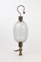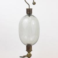 Instruments científics Patrimoni moble - Eines i equips - Electricitat i magnetisme FFUB-0240 Ou elèctric Artefacte experimental (electroestàtica) Electromagnetisme Descripció general: Instrument utilitzat en l’àmbit educatiu per a estudiar les descàrregues elèctriques en gasos enrarits. El muntatge consta d’un globus de vidre amb dos varetes de coure en l’interior acabades en esferes. La superior es pot moure per variar la distància entre varetes. Permet fer experiments en el buit si es connecta una bomba de buit en la base. Hi ha altres variacions d’aquest aparell, per exemple l’ou elèctric De la Rive (FFUB-0274). Funcionament: Es connecta la vareta superior a un generador de corrent i es pot observar una descàrrega entre les esferes del extrems a l’interior. A nivell visual permet veure com canvia el color i la intensitat de la llum de la descàrrega per a diferents concentracions d’aire en l’interior de l’aparell o utilitzant diferents gasos. Dades històriques: Probablement adquirit en la dècada del 1860. Desconegut 14 x 14 x 45 cm Llautó|Vidre (material) Desconegut Facultat de Física. Martí i Franquès, 1-11, 08028 Barcelona Sala del Deganat Desconeguda Bo Reserva (magatzem) Ganot A. "Tratado elemental de física experimental y aplicada y de meteorología", 6 ed., 1873, pág. 650|https://bdh-rd.bne.es/viewer.vm?id=0000132252&page=615 Protegit per dret d'autor No Santiago Vallmitjana Rico, Departament de Física Aplicada, UB|Joan Manel Hernández, Departament de Física de la Matèria Condensada, UB