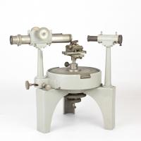 Instruments científics Patrimoni moble - Eines i equips - Òptica FFUB-0173 Goniòmetre de Babinet Goniòmetre Òptica És un aparell per mesurar angles de refracció i també angles entre les cares de prismes i cristalls. En el cas dels prismes, les mesures també permeten calcular l’índex de refracció. Consta d’una platina giratòria per posar-hi la mostra, un col·limador amb una escletxa i un tub amb una ullera amb reticle que gira sobre una escala circular, que dona les lectures dels angles. J & A Duboscq 1860-1890 1860 1890 48 x 15 x 35 cm Llautó París, França Facultat de Física. Martí i Franquès, 1-11, 08028 Barcelona Sala de Juntes Desconeguda Bo Reserva (magatzem) Protegit per dret d'autor No Santiago Vallmitjana Rico, Departament de Física Aplicada, UB|Joan Manel Hernández, Departament de Física de la Matèria Condensada, UB
