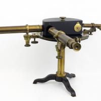 Instruments científics Patrimoni moble - Eines i equips - Topografia i navegació FFUB-0152 Teodolit Teodolit Mesurament És un instrument que s’empra generalment per determinar angles verticals i horitzontals, sobretot en els camps de la geodèsia i l’astronomia. Ertel & Sohn 1860-1890 1860 1890 50 x 30 x 42 cm Llautó|Vidre (material) Munic, Alemanya Facultat de Física. Martí i Franquès, 1-11, 08028 Barcelona Despatx 501 Desconeguda Bo Reserva (magatzem) Protegit per dret d'autor No Santiago Vallmitjana Rico, Departament de Física Aplicada, UB|Joan Manel Hernández, Departament de Física de la Matèria Condensada, UB