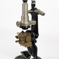 Instruments científics Patrimoni moble - Eines i equips - Òptica FFUB-0154 Microscopi Spencer Microscopi Òptica Spencer Lens Co. 1900-1920 1900 1920 12 x 17 x 35 cm Llautó|Vidre (material) Búfal, EUA Facultat de Física. Martí i Franquès, 1-11, 08028 Barcelona Despatx 503 Desconeguda Bo Reserva (magatzem) Protegit per dret d'autor No Santiago Vallmitjana Rico, Departament de Física Aplicada, UB|Joan Manel Hernández, Departament de Física de la Matèria Condensada, UB
