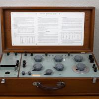 Instruments científics Patrimoni moble - Eines i equips - Electricitat i magnetisme|Patrimoni moble - Eines i equips - Mesurament FFUB-0189 Pont de Wheatstone de precisió Artefacte de mesurament d'electricitat Electromagnetisme Croydon Precision Instruments Vora 1950 1940 1960 68 x 34 x 20 cm Ferro (metall)|Acer|Fusta|Coure (metall)|Baquelita Londres, Regne Unit Facultat de Física. Martí i Franquès, 1-11, 08028 Barcelona Passadis Antic Planta 4 Desconeguda Bo Reserva (magatzem) Protegit per dret d'autor No Santiago Vallmitjana Rico, Departament de Física Aplicada, UB|Joan Manel Hernández, Departament de Física de la Matèria Condensada, UB