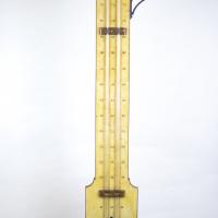 Instruments científics Patrimoni moble - Eines i equips - Mesurament|Patrimoni moble - Eines i equips - Meteorologia FFUB-0181 Baròmetre de Fortin Baròmetre Meteorologia El baròmetre de Fortin es basa el el célebre experiment de Evangelista Torricelli (1608-1647). Consta d’un tub tancat amb una columna de mercuri. En la base hi ha un dipòsit amb el mercuri, amb capacitat variable per l’acció d’un cargol sobre una membrana de cuir, permetent corregir l’alçada de la columna de mercuri per a la correcta regulació o posada en estació. E. Ducretet & Cie 1870-1900 1870 1900 12 x 105 x 13 cm Llautó|Vidre (material)|Fusta París, França Facultat de Física. Martí i Franquès, 1-11, 08028 Barcelona Despatx 502 (S. Vallmitjana) Desconeguda Bo Reserva (magatzem) Protegit per dret d'autor No Santiago Vallmitjana Rico, Departament de Física Aplicada, UB|Joan Manel Hernández, Departament de Física de la Matèria Condensada, UB