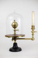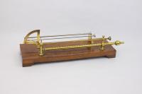 Instruments científics Patrimoni moble - Eines i equips - Termodinàmica FFUB-0054 Dilatòmetre cúbic o esfera de Gravesande Dilatòmetre Termodinàmica Instrument del camp de la termologia. La bola, en escalfar-se, no pot passar a través de l’anella, però la dilatació és tan petita que una agulla no podria passar per la distància que hi ha entre l’anella i la bola. De fet, n’incorpora una per mostrar-ho. No funciona perquè hi falta el pot per a la metxa i l’alcohol per escalfar la bola. L’aparell s’utilitzava per a la docència. En bon estat de conservació. Desconegut 1870-1900 1870 1900 22 x 12 x 28 cm Llautó|Fusta Desconegut Facultat de Física. Martí i Franquès, 1-11, 08028 Barcelona Sala de Juntes Desconeguda Roman Magrans Geis, 1987-1995 Bo Reserva (magatzem) Ganot A. "Tratado elemental de física experimental y aplicada y de meteorología", 8 ed. Paris, J. B. Bailliere, 1880, p. 293-295|http://bdh-rd.bne.es/viewer.vm?id=0000113698&page=18|http://bdh-rd.bne.es/viewer.vm?id=0000131786&page=25 Falta el pot amb metxa i alcohol per escalfar l'esfera. L'aparell s'utilitzava per a la docència. Protegit per dret d'autor No Santiago Vallmitjana Rico, Departament de Física Aplicada, UB|Joan Manel Hernández, Departament de Física de la Matèria Condensada, UB