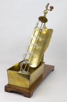 Instruments científics Patrimoni moble - Eines i equips - Mecànica FFUB-0063 Cargol d’Arquimedes Cargol d'Arquimedes Mecànica Instrument per il·lustrar un mètode per elevar líquids, utilitzat en experiències de càtedra. Maqueta de la màquina d’elevació d’aigua, farina o cereals atribuïda a Arquimedes. Funciona gràcies a la seva geometria, de manera que el fluid sempre està a la part més baixa de cada una de les voltes, seguint una estructura helicoïdal. Desconegut 1870-1900 1870 1900 16 x 50 x 57 cm Llautó|Vidre (material)|Fusta Desconegut Facultat de Física. Martí i Franquès, 1-11, 08028 Barcelona Sala del Deganat Desconeguda Roman Magrans Geis, 2006-2007 Bo Reserva (magatzem) Es va utilitzar per a la docència. Protegit per dret d'autor No Santiago Vallmitjana Rico, Departament de Física Aplicada, UB|Joan Manel Hernández, Departament de Física de la Matèria Condensada, UB