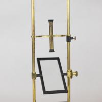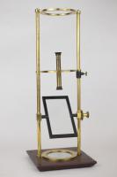 Instruments científics Patrimoni moble - Eines i equips - Mesurament|Patrimoni moble - Eines i equips - Òptica FFUB-0067 Polariscopi de reflexió o de Nörremberg Polariscopi Òptica El sistema, construït en vertical, consta d’un mirall al fons que té a sobre un vidre polaritzador, inclinable i amb un nònius per mesurar l’angle. A sobre hi ha dos pisos formats per dues circumferències gravades amb l’angle. Rang de mesura: de 0 a 180 graus (nònius del vidre); de 0 a 360 graus (cercles). Precisió: 5 graus (nònius del vidre); 1 grau (cercles). Instrument complet. En bon estat de conservació. Desconegut 1870-1890 1870 1890 17 x 17 x 45 cm Llautó|Vidre (material)|Fusta Desconegut Facultat de Física. Martí i Franquès, 1-11, 08028 Barcelona Sala de Juntes Desconeguda Roman Magrans Geis, 2006-2007 Bo Reserva (magatzem) Ganot A. "Tratado elemental de física experimental y aplicada y de meteorología", 8 ed. Paris, J. B. Bailliere, 1880, p. 573|https://bipadi.ub.edu/digital/collection/fisica/id/43875 Protegit per dret d'autor No Santiago Vallmitjana Rico, Departament de Física Aplicada, UB|Joan Manel Hernández, Departament de Física de la Matèria Condensada, UB