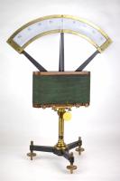 Instruments científics Patrimoni moble - Eines i equips - Electricitat i magnetisme|Patrimoni moble - Eines i equips - Mesurament FFUB-0093 Galvanòmetre de Deprez-D’Arsonval Galvanòmetre|Instrument de mesura (instrument) Electromagnetisme Descripció general: En general, els galvanòmetres mesuren la intensitat de corrent i la seva direcció (mitjançant la llei d'Ampere). Fonamentalment formats per una agulla rodejada d'una espira metàl·lica sobre una base de fusta. Abans de fer qualsevol mesura s'ha de modificar la base fins que l'agulla apunti al zero i, per tant, estigui anivellada. Es poden classificar en galvanòmetres d’imant mòbil o de quadre mòbil segons si la peça mòbil és l’imant o el quadre de filferro. Funcionament: Es tracta d’un electròmetre estàndard que mesura amb una agulla imantada un flux de corrent elèctrica generat en un camp electromagnètic a partir d’un imant estàtic permanent i una bobina en moviment. Dades històriques: Rep un nom propi ja que en concret va ser utilitzat per D’Arsonval en medicina. En un camp anomenat diatèrmia que consisteix en tractar malalties mitjançant la inducció de calor a través de la pell. Predecessor de tècniques modernes que tracten malalties com l’artritis utilitzant la calor. J. Carpentier 1870-1900 1870 1900 16 x 16 x 28 cm Llautó|Vidre (material) París, França Facultat de Física. Martí i Franquès, 1-11, 08028 Barcelona Vestíbul Planta 1 Desconeguda Bo Exposició "Electromagnetisme" - Facultat de Física - Universitat de Barcelona (Barcelona, Barcelonés, Barcelona, Espanya) - a partir del 22 setembre de 2022 http://cnum.cnam.fr/CGI/fpage.cgi?M9854/65/100/197/0/03 Protegit per dret d'autor Santiago Vallmitjana Rico, Departament de Física Aplicada, UB|Joan Manel Hernández, Departament de Física de la Matèria Condensada, UB