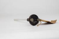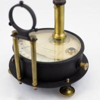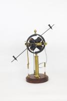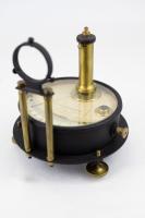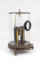 Instruments científics Patrimoni moble - Eines i equips - Electricitat i magnetisme|Patrimoni moble - Eines i equips - Mesurament FFUB-0112 Electròmetre Mascart Electròmetre|Instrument de mesura (instrument) Electromagnetisme Descripció general: Els electròmetres s’utilitzen per a mesurar la càrrega o la diferència de potencial de l’electricitat. Usualment, mesura el voltatge entre dos punts d’un circuït elèctric. Aquest cas en concret es basa en l’electròmetre de Thompson (també anomenat electròmetre de quadrants) i està especialment indicat per estudiar l’electricitat atmosfèrica. Funcionament: Els quadrants van fixats a la placa superior del recipient mitjançant suports de vidre aïllants, quedant un d’ells mòbil per a ajustar l’instrument. Presenta una agulla d’alumini en l’interior connectada per un fil de platí amb la base interior on hi ha àcid sulfúric concentrat. E. Ducretet & Cie 1900-1930 1900 1930 19 x 19 x 44 cm Llautó París, França Facultat de Física. Martí i Franquès, 1-11, 08028 Barcelona Vestíbul Planta 1 Desconeguda Bo Exposició "Electromagnetisme" - Facultat de Física - Universitat de Barcelona (Barcelona, Barcelonés, Barcelona, Espanya) - a partir del 22 setembre de 2022 Protegit per dret d'autor Santiago Vallmitjana Rico, Departament de Física Aplicada, UB|Joan Manel Hernández, Departament de Física de la Matèria Condensada, UB