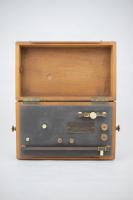 Instruments científics Patrimoni moble - Eines i equips - Electricitat i magnetisme FFUB-0124 Aparell adaptador d’impedàncies Transformador d'impedància Electromagnetisme Societé d'etablissements Ducretet 1900-1930 1900 1930 27 x 10 x 19 cm Fusta|Baquelita París, França Facultat de Física. Martí i Franquès, 1-11, 08028 Barcelona Passadis Antic Planta 4 Desconeguda Bo Reserva (magatzem) Protegit per dret d'autor No Santiago Vallmitjana Rico, Departament de Física Aplicada, UB|Joan Manel Hernández, Departament de Física de la Matèria Condensada, UB