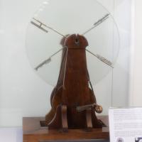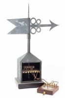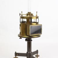 Instruments científics Patrimoni moble - Eines i equips - Mesurament|Patrimoni moble - Eines i equips - Meteorologia FFUB-0120 Anemoscopi electric Moncel Brúixola (indicador de direcció) Meteorologia Descripció general: Els anemoscopis, també coneguts com a mànigues de vent, serveixen per mesurar la direcció i la força del vent respecte de l'horitzontal del terra. En aquest cas es tracta d'un aparell encara més limitat que només mesura la direcció del vent. En el seu moment, resultava molt inconvenient poder tenir mesures durant tot el dia sense estar prop de l'instrument. Per aquesta raó es van començar a fabricar uns que donessin les mesures mitjançant un dispositiu extern. És el cas de l'anemoscopi de Moncel. Funcionament: El penell i el visor estan comunicats per un cable de coure format per cinc fils aïllats, els quals connecten un interruptor situat al penell amb uns electroimants situats en el visor. Aquests electroimants es col·loquen en 8 direccions de la rosa dels vents (nord, nord-est, est, sud-est, sud, sud-oest, oest i nord-oest). Mitjançant l'electricitat d'una pila, permet marcar la direcció del penell i, per tant, la direcció del vent sense la necessitat de veure l'aparell en si. Desconegut 1880-1900 1880 1900 14 x 17 x 5 cm (indicador); 60 x 25 x 80 cm (penell) Llautó|Vidre (material)|Fusta Desconegut Facultat de Física. Martí i Franquès, 1-11, 08028 Barcelona Vitrina Fontseré Desconeguda Bo Exposició "Exposició permanent" - Facultat de Física - Universitat de Barcelona (Barcelona, Barcelonés, Barcelona, Espanya) - a partir del 22 setembre de 2022 https://gallica.bnf.fr/ark:/12148/bpt6k1417973k/f70.item.zoom Protegit per dret d'autor Santiago Vallmitjana Rico, Departament de Física Aplicada, UB|Joan Manel Hernández, Departament de Física de la Matèria Condensada, UB