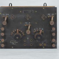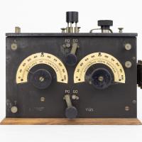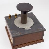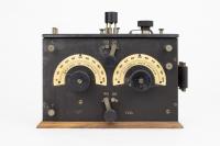Instruments científics Patrimoni moble - Eines i equips - Electricitat i magnetisme FFUB-0115 Aparell de radiofreqüència Transceptor Electromagnetisme Ateliers Ducretet Ernest Roger 1910-1930 1910 1930 29 x 8 x 20 cm Llautó|Fusta París, França Facultat de Física. Martí i Franquès, 1-11, 08028 Barcelona Passadis Antic Planta 4 Desconeguda Bo Reserva (magatzem) Protegit per dret d'autor No Santiago Vallmitjana Rico, Departament de Física Aplicada, UB|Joan Manel Hernández, Departament de Física de la Matèria Condensada, UB