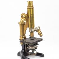 Instruments científics Patrimoni moble - Eines i equips - Òptica FFUB-0046 Microscopi Leitz Microscopi Òptica E. Leitz 1900-1925 1900 1925 12 x 15 x 30 cm Llautó|Vidre (material)|Acer Wetzlar, Alemanya Facultat de Física. Martí i Franquès, 1-11, 08028 Barcelona Sala de Juntes Cessió Roman Magrans Geis, 1987-1995 Bo Reserva (magatzem) Protegit per dret d'autor No Santiago Vallmitjana Rico, Departament de Física Aplicada, UB|Joan Manel Hernández, Departament de Física de la Matèria Condensada, UB