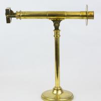 Instruments científics Patrimoni moble - Eines i equips - Òptica FFUB-0073 Reflector o mirall ustori Mirall ustori Acústica Reflector per a so i calor. El sistema consta d’un paraboloide de llautó, amb una barnilla que permet aguantar objectes al focus del paraboloide. Tot està suportat per un peu triangular de fusta. El joc complet constava de dues unitats. S’utilitzava per a la docència. Es troba en bon estat de conservació. Va ser restaurat per l’Escola d’Art i Disseny de la Diputació de Tarragona a Tortosa entre el 2005 i el 2006. En experiments de transmissió de calor, es posava un cotó humitejat amb alcohol al focus, que transmetia calor fins a la ignició a través d’una brasa a l’altre focus de l’altra unitat. Per a experiments de so, se situava un rellotge en un focus i s’escoltava a l’altre focus. Desconegut 1850-1890 1850 1890 56 x 62 x 141 cm Llautó|Fusta Desconegut Facultat de Física. Martí i Franquès, 1-11, 08028 Barcelona Sala de Juntes Desconeguda Escola d’Art i Disseny de la Diputació de Tarragona a Tortosa, Espanya, 2005-2006 Bo Reserva (magatzem) Ganot A. "Tratado elemental de física experimental y aplicada y de meteorología", 8 ed. Paris, J. B. Bailliere, 1880, p. 419|http://bdh-rd.bne.es/viewer.vm?id=0000131786&page=241 Utilitzat per a la docència. En experiments de transmissió de el calor es col·locava un cotó humitejat d'alcohol al focus i se li transmetia calor per reflexió. Igual amb experiments de so. Protegit per dret d'autor No Santiago Vallmitjana Rico, Departament de Física Aplicada, UB|Joan Manel Hernández, Departament de Física de la Matèria Condensada, UB