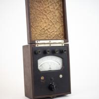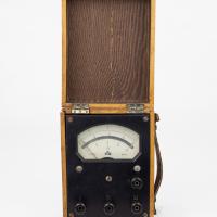 Instruments científics Patrimoni moble - Eines i equips - Electricitat i magnetisme|Patrimoni moble - Eines i equips - Mesurament FFUB-0134 Voltímetre-Decibelímetre Instrument de mesura (instrument)|Voltímetre Electromagnetisme Philips 1920-1940 1920 1940 19 x 7 x 13 cm Vidre (material)|Baquelita Desconegut Facultat de Física. Martí i Franquès, 1-11, 08028 Barcelona Passadis Antic Planta 4 Desconeguda Bo Reserva (magatzem) Protegit per dret d'autor No Santiago Vallmitjana Rico, Departament de Física Aplicada, UB|Joan Manel Hernández, Departament de Física de la Matèria Condensada, UB