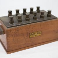 Instruments científics Patrimoni moble - Eines i equips - Electricitat i magnetisme FFUB-0103 Mesurador per puntes de descàrrega Instrument de mesura (instrument) Electromagnetisme W.G. Pye and Co. Ltd. 1910-1940 1910 1940 12 x 12 x 21 cm Vidre (material)|Acer Cambridge, Regne Unit Facultat de Física. Martí i Franquès, 1-11, 08028 Barcelona Passadis Antic Planta 4 Desconeguda Regular (possible tractament) Reserva (magatzem) Protegit per dret d'autor No Santiago Vallmitjana Rico, Departament de Física Aplicada, UB|Joan Manel Hernández, Departament de Física de la Matèria Condensada, UB