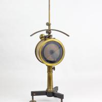 Instruments científics Patrimoni moble - Eines i equips - Electricitat i magnetisme FFUB-0095 Galvanòmetre de mirall mòbil Galvanòmetre|Instrument de mesura (instrument) Electromagnetisme Descripció general: En general, els galvanòmetres mesuren la intensitat de corrent i la seva direcció (mitjançant la llei d'Ampere). Fonamentalment formats per una agulla rodejada d'una espira metàl·lica sobre una base de fusta. Abans de fer qualsevol mesura s'ha de modificar la base fins que l'agulla apunti al zero i, per tant, estigui anivellada. Es poden classificar en galvanòmetres d’imant mòbil o de quadre mòbil segons si la peça mòbil és l’imant o el quadre de filferro. Funcionament: Aquest en concret també se’l coneix com galvanòmetre balístic i, en aquest cas, la peça mòbil és el mirall. Especialment indicat per a mesures de la intensitat durant períodes molt petits de temps i, per tant, adreçat a circuïts amb una variació sobtada del camp magnètic o la descàrrega d’un condensador. La seva classificació com a balístic prové del pes addicional que es penja del quadre mòbil per augmentar el seu període respecte el temps que circularà el corrent. Llavors, el pas del corrent equival a una oscil·lació del mirall i la carrega que ha circulat serà proporcional a la velocitat angular que ha conferit al quadre mòbil. Dades històriques: Utilitzat a la Universitat de Barcelona a principis del segle XX i fabricat per Hartmann & Braun AG. Hartmann & Braun A.G. 1880-1910 1880 1910 20 x 20 x 24 cm Llautó Frankfurt, Alemanya Facultat de Física. Martí i Franquès, 1-11, 08028 Barcelona Vestíbul Planta 1 Desconeguda Bo Exposició "Electromagnetisme" - Facultat de Física - Universitat de Barcelona (Barcelona, Barcelonés, Barcelona, Espanya) - a partir del 22 setembre de 2022 Protegit per dret d'autor Santiago Vallmitjana Rico, Departament de Física Aplicada, UB|Joan Manel Hernández, Departament de Física de la Matèria Condensada, UB