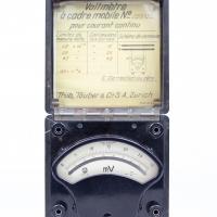 Instruments científics Patrimoni moble - Eines i equips - Electricitat i magnetisme|Patrimoni moble - Eines i equips - Mesurament FFUB-0137 Voltímetre Instrument de mesura (instrument)|Voltímetre Electromagnetisme Trüb Taüber & Cie S.A. 1920-1940 1920 1940 12 x 12 x 5 cm Vidre (material)|Baquelita Zuric, Suïssa Facultat de Física. Martí i Franquès, 1-11, 08028 Barcelona Despatx V533 Desconeguda Bo Reserva (magatzem) Protegit per dret d'autor No Santiago Vallmitjana Rico, Departament de Física Aplicada, UB|Joan Manel Hernández, Departament de Física de la Matèria Condensada, UB