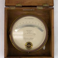 Instruments científics Patrimoni moble - Eines i equips - Electricitat i magnetisme|Patrimoni moble - Eines i equips - Mesurament FFUB-0144 Amperímetre Amperímetre|Instrument de mesura (instrument) Electromagnetisme Aparell per mesurar la intensitat d’un corrent elèctric. El rang de treball és de 0 a 1 mA, amb una precisió de 0,01 mA. Chauvin & Arnoux 1900-1920 1900 1920 18 x 18 x 5,5 cm Llautó|Vidre (material) París, França Facultat de Física. Martí i Franquès, 1-11, 08028 Barcelona Passadis Antic Planta 4 Desconeguda Bo Reserva (magatzem) Protegit per dret d'autor No Santiago Vallmitjana Rico, Departament de Física Aplicada, UB|Joan Manel Hernández, Departament de Física de la Matèria Condensada, UB