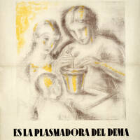 Cares d' una dona i un infant. El cartellista és del Sindicat de Dibuixants Professionals de la UGT |