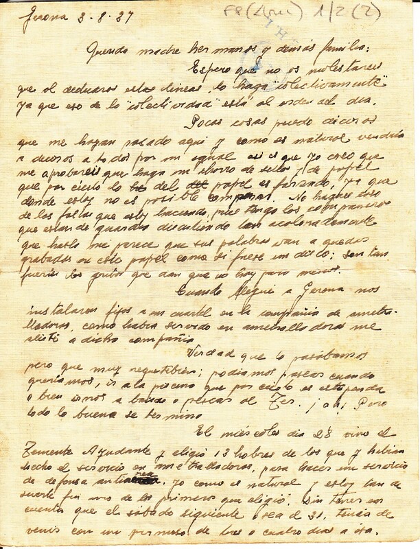 Carta d'Antoni Llonc des del front adreçada a la seva família