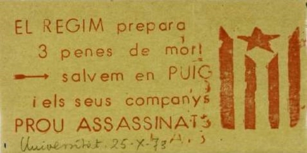 Part de «El Règim prepara 3 penes de mort!: salvem en Puig i els seus companys: prou assassinats»