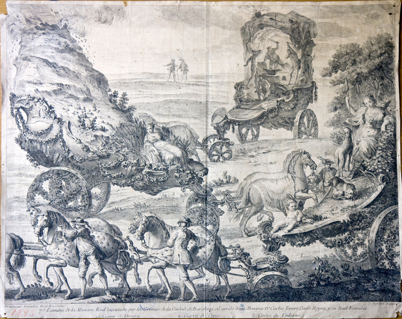 Part de 7ª lamina de la Mascara Real executada por los Gremios de la Ciudad de Barcelona al arribo de su Monarca Dn. Carlos Tercero, con la Reyna y su Real Familia