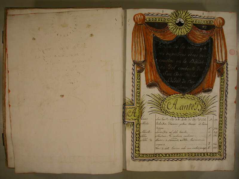 Part de Índice de los autores y de sus respectivas obras que existen en la Biblioteca del combento de San José de la ciudad de Barcelona