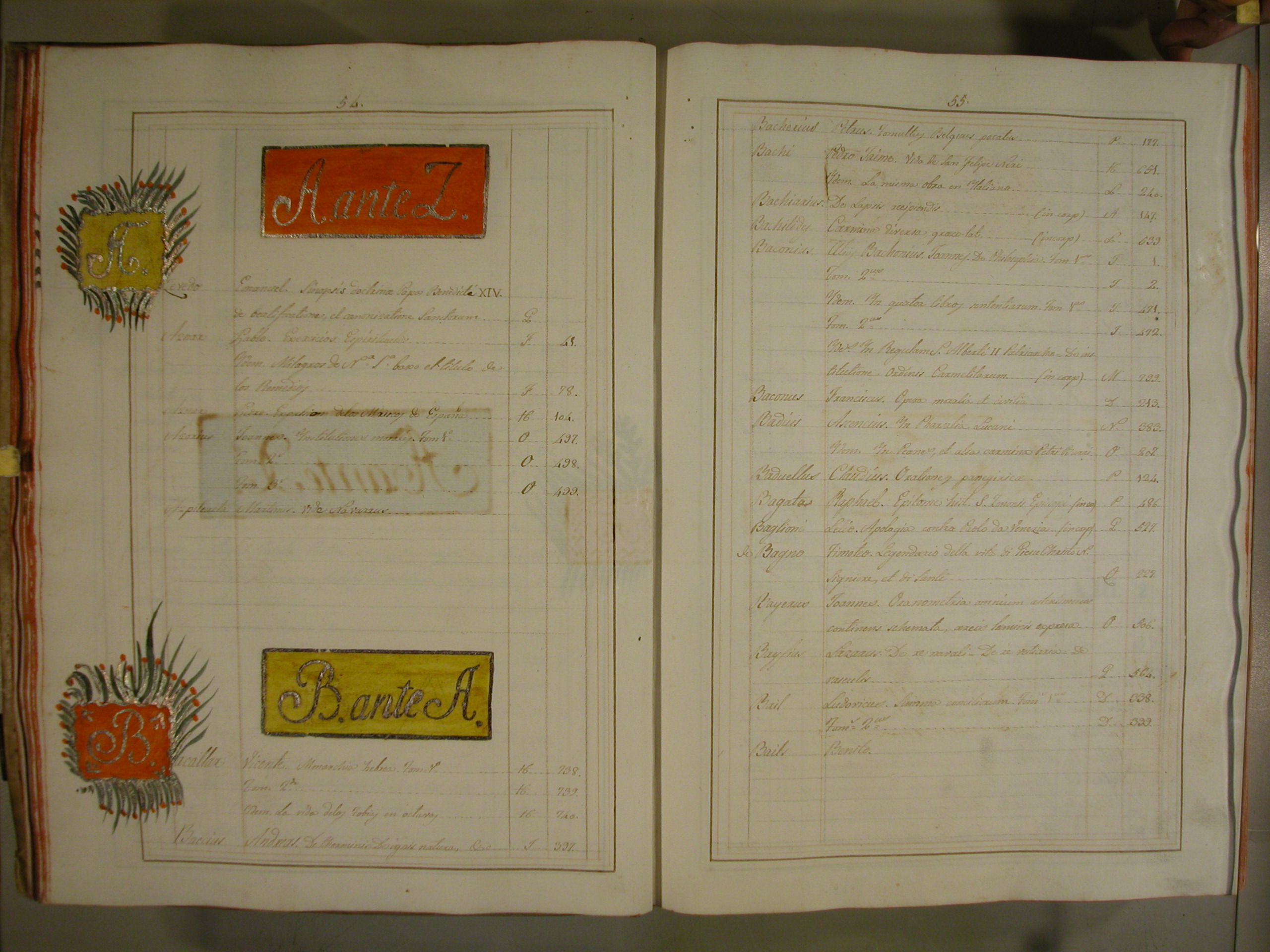 Part de Índice de los autores y de sus respectivas obras que existen en la Biblioteca del combento de San José de la ciudad de Barcelona