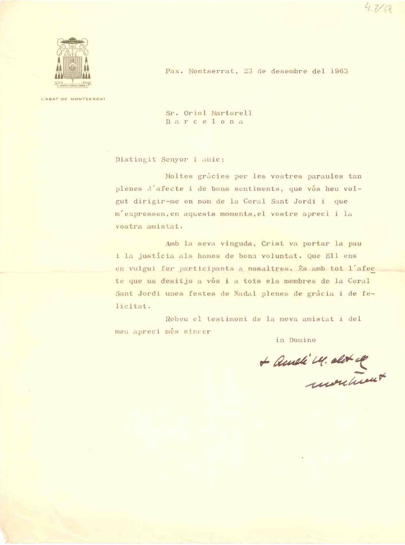 Correspondència entre Oriol Martorell i l'abat Escarré