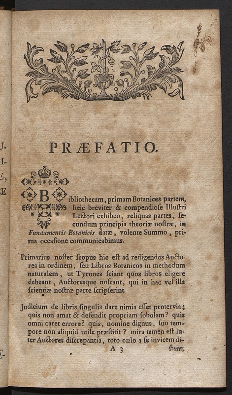 Part de Caroli Linnaei ... Bibliotheca botanica : recensens libros plus mille de plantis huc usque editos, secundum systema auctorum naturale in classes, ordines, genera et species dispositos : additis editionis loco, tempore, forma, lingua caet. cum explicatione fundamentorum botanicorum pars I