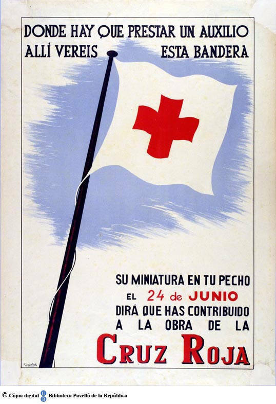 Part de Donde hay que prestar un auxilio, allí veréis esta bandera : su miniatura en tu pecho el 24 de junio dirá que has contribuido a la obra de la Cruz Roja