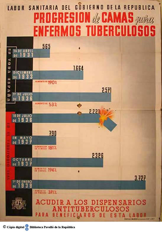 Part de Progresión de camas para enfermos tuberculosos : labor sanitaria del Gobierno de la República : acudir a los dispensarios antituberculosos para beneficiaros de esta labor